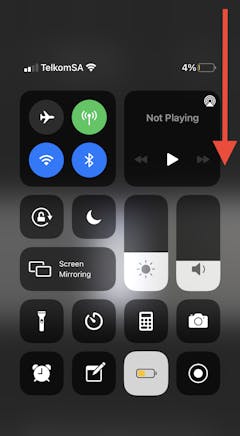 - To start the screen recording, scroll down your Control Centre by swiping DOWN from the top of your screen.