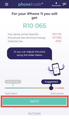 Now we will give you a suggested sale price that you can change whenever you want. Simply drag the price slider to the right to sell at a higher price or to the left to sell for a smaller amount. Then, click "Sell it!"