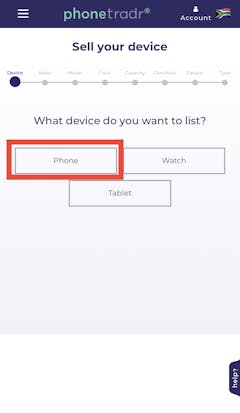 Go to https://www.phonetradr.com/. You’ll see a “Buy” and “Sell” tab at the top of your screen. Select “Sell”.