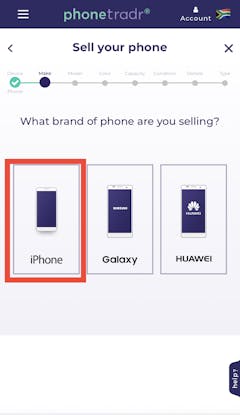 Select which brand of smartphone you have. We offer owners of iPhone, Samsung and Huawei phones to sell their devices.
